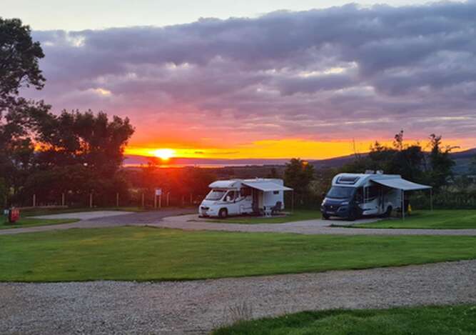 Here at Bridgend Campsite, we take pride in our island, hospitality and facilities; we want you to have the best possible visit to our island. We are a small picturesque site, which has facilities for campervans, motorhomes, caravans and tents. The site itself is on a gently sloping field and comprises of both grass and hard standing pitches; it is surrounded by beautiful countryside and also has views to the sea and amazing sunsets. As you might expect, all hard-standing pitches are level, some units may still want to use levelling blocks, though this is by no means essential.